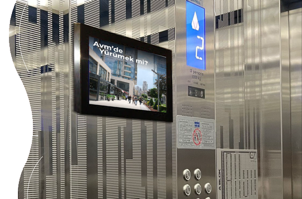 Her katta önemli bir yer alan asansör bekleme alanlarının kullanımı, reklam için değerli yerlerden bir tanesidir. Asansör bekleme süresince görülecek reklamlar ile tanıtımınızı yapabilirsiniz.